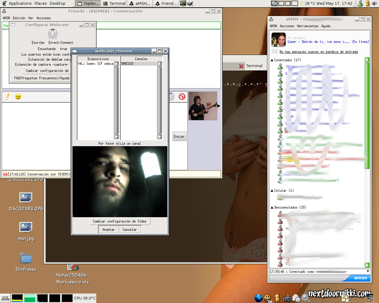 El mensajero aMSN, feo e inestable, ya me permitía ver, pero el driver de la cámara avanzaba lento y no podía usar mi propio WebCam. Hoy finalmente saqué andando la última versión del driver spca5xx y la cosa ha mejorado mucho.